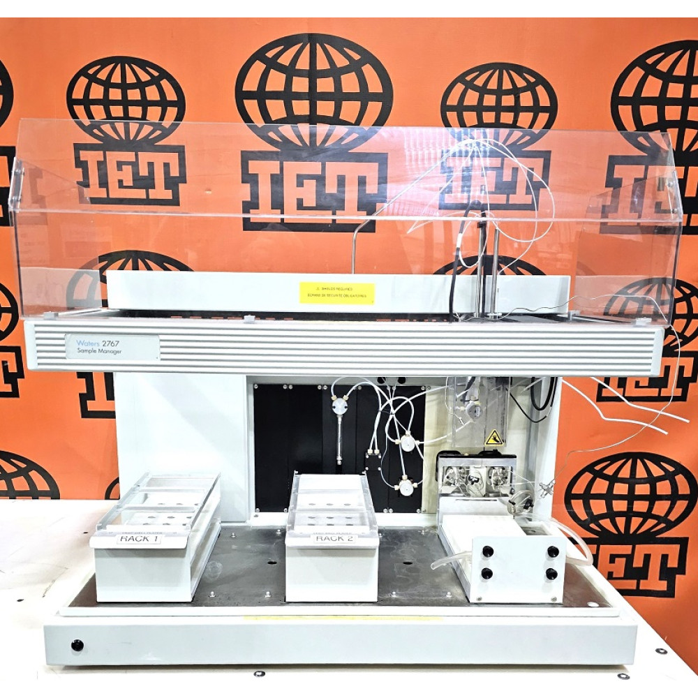 The 2767 Sample Manager has separate sampling and fraction dispensing probes in a unique XYZSZF robotic arm ensuring that all positions on the worktable are accessible to either probe. It’s pre-configured with separate analytical and preparative injectors to allow alternating between analytical and preparative scale isolation and purification without hardware changes. Please contact us for complete Waters 2767 autosampler details. (Waters 2767 Sample Manager, Injector, and Collector)